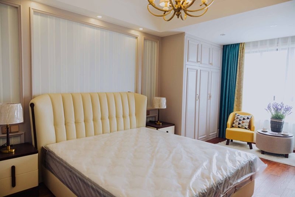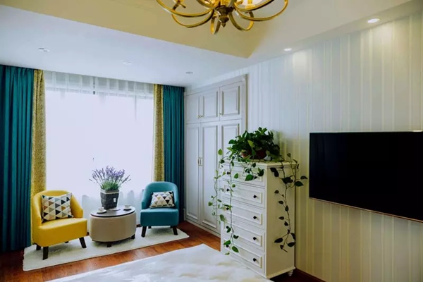 ▲主臥布置較為溫馨,作為主人的私密空間,主要以功能性和實(shí)用舒適為考慮的重點(diǎn),窗簾藍(lán)黃主調(diào)與椅凳相呼應(yīng),更為和諧。 ------------------------------------------ 家 不僅僅是一棟房屋 一組沙發(fā),一張睡床 應(yīng)該是生活和藝術(shù)完美的結(jié)合 心隨境而變,心因家而安 …… 為你打造心的空間 萬家利裝飾 一家專注于室內(nèi)設(shè)計與施工的裝修公司 我們懂你的家,更懂你的生活 —end—