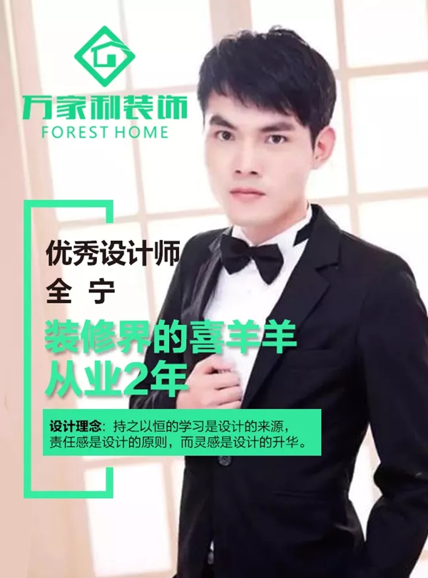NO.8 裝修界的喜羊羊 充滿設(shè)計智慧的他,短短兩年 破釜沉舟、臥薪嘗膽 從公司幾十位設(shè)計師中脫穎而出 所有服務(wù)過的業(yè)主都給了大拇指、贊不絕口 日常勤勤懇懇、只為更好服務(wù)業(yè)主