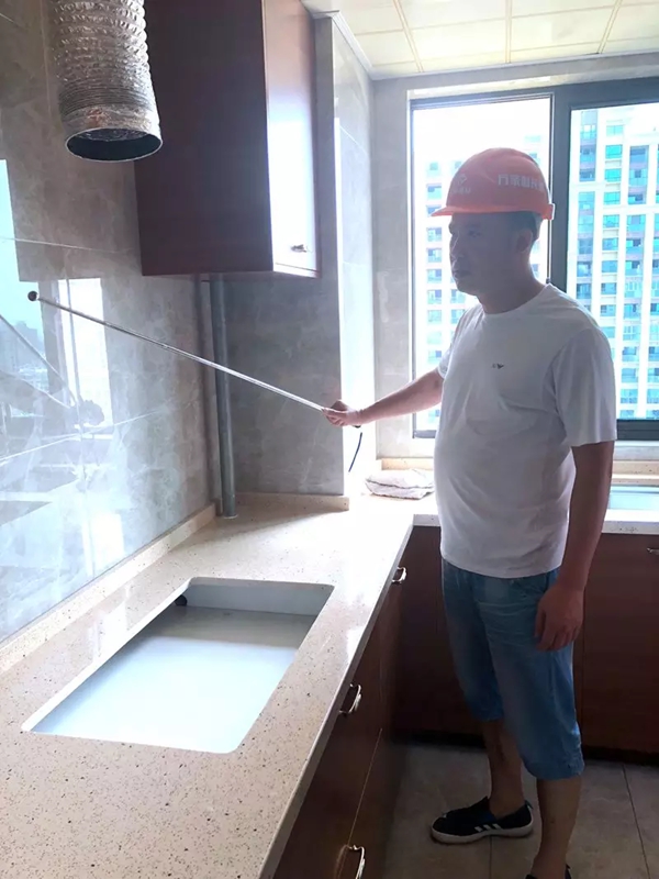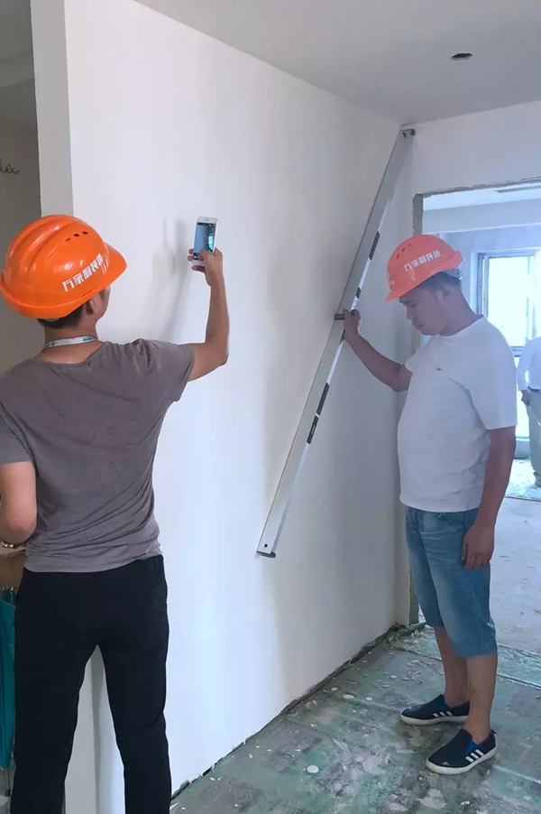 ▲正在用靠尺檢查墻面平整度,這樣能檢查出底漆和面漆的施工細(xì)節(jié)作做的怎么樣。這是我們油漆環(huán)節(jié)檢查的重要步驟,不能忽視。 ▲巡檢小組現(xiàn)場測量,對檢查出的墻面不平整等問題拍照并做記錄。巡檢從來不止于表面,我們要做的是把問題落到實(shí)處,解決并完善,認(rèn)真負(fù)責(zé)才是我們的態(tài)度。