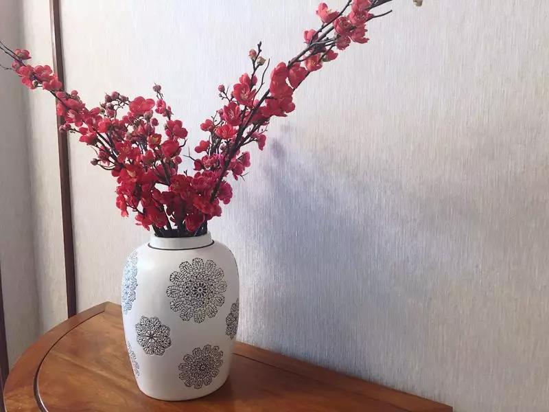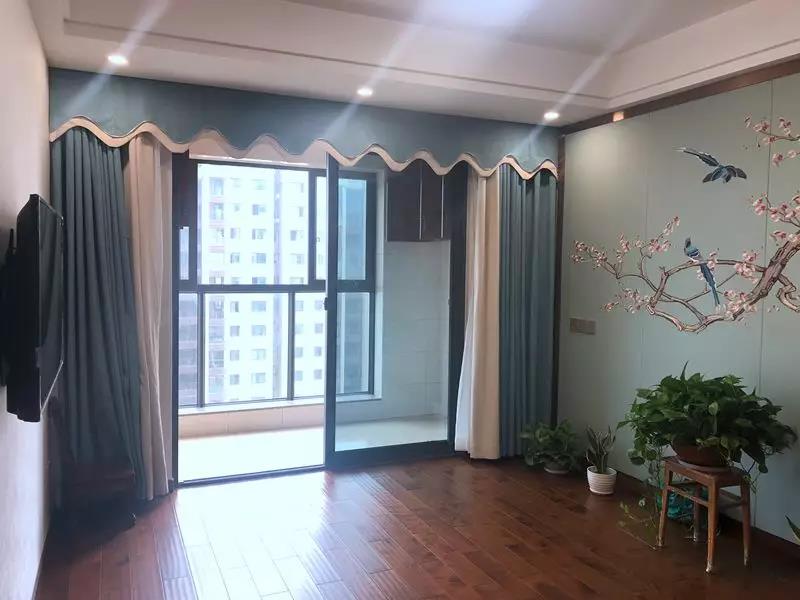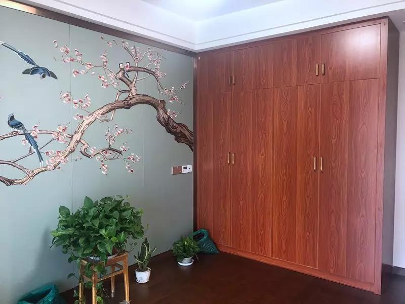 背景墻采用梅花小鳥的圖案來裝飾,底色與窗簾相呼應(yīng),增添一絲柔和。