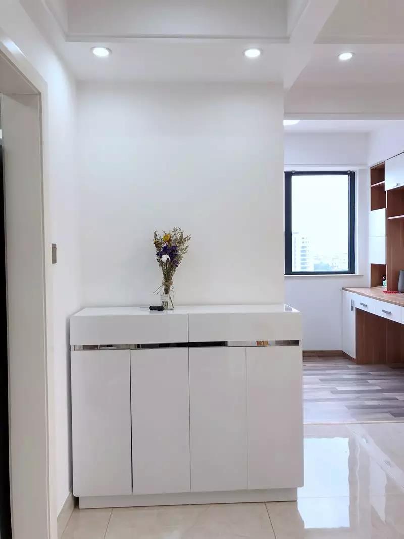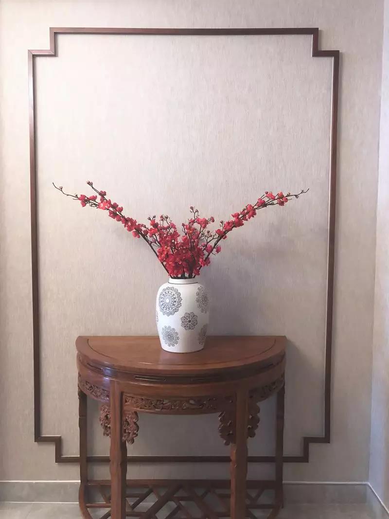 進(jìn)門玄關(guān),就已經(jīng)隱隱透出中式風(fēng)味,室內(nèi)采用的素色墻布,在大面積留白之余, 也用其細(xì)膩溫和的色彩提亮了整體空間的視覺效果,并且這一手法延續(xù)到了室內(nèi)其他空間。 業(yè)主還打算在這里添置一幅畫,能讓空間更為豐滿。