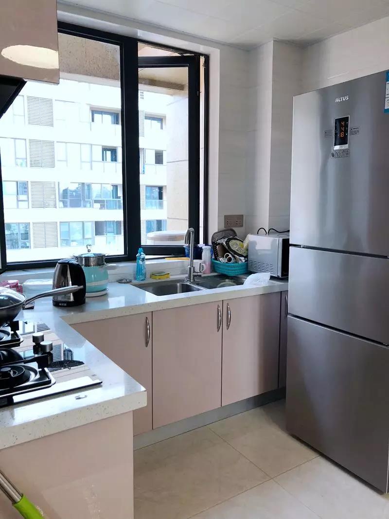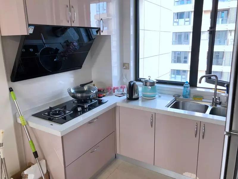 廚房以淡粉色為基調(diào),清新的顏色搭配看上去非常舒服,增添了一絲溫馨感。