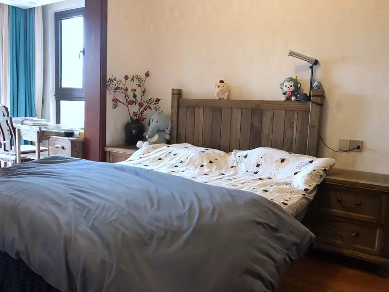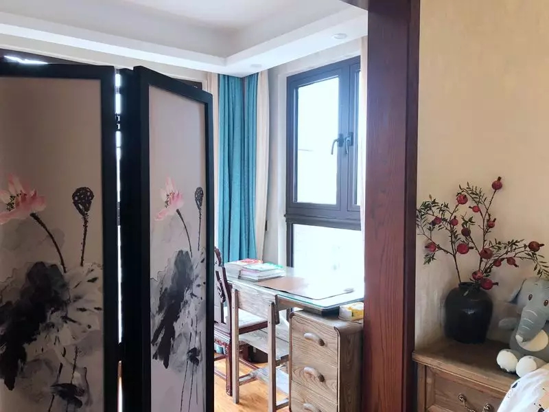 兒童房以原木色為主色調,書柜里放滿了書,也是個愛學習的好寶寶!看,有蓮蓬,這個屏風是不是很亮眼,作為書桌和房間的小隔斷,顏值也是杠杠的。