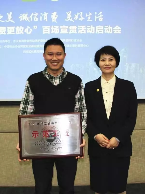 萬(wàn)家利裝飾受邀參加由浙江省消費(fèi)者權(quán)益保護(hù)委員會(huì)、浙江省建筑行業(yè)協(xié)會(huì)舉辦的“信用讓消費(fèi)更放心”百場(chǎng)宣貫活動(dòng)啟動(dòng)會(huì) 并榮獲“2018年度浙江省透明住宅裝飾示范工程”