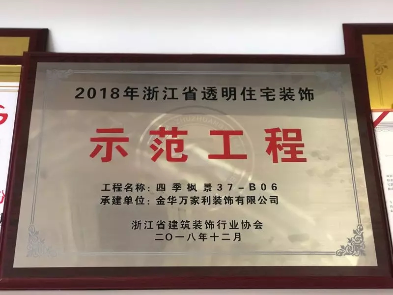 | 萬(wàn)家利裝飾榮獲2018年度浙江省透明住宅裝飾示范工程! |