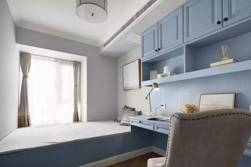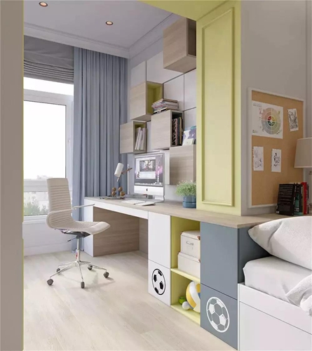 有窗戶的房間,最好在窗戶的地方做一組學(xué)習(xí)桌, 學(xué)習(xí)時(shí)光線比較充足,書桌的設(shè)計(jì)要最大程度地利用空間。