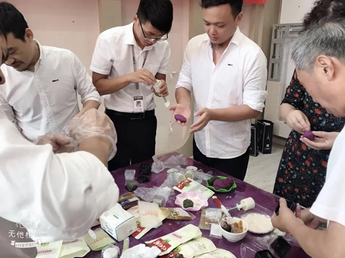 從包月餅餡再到用模具做出月餅, 小伙伴們?nèi)、壓、團(tuán),熱火朝天地開始做著, 一個(gè)個(gè)高顏值的冰皮月餅就做好了。
