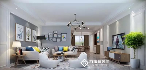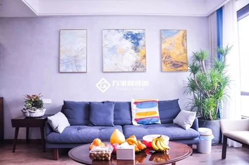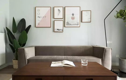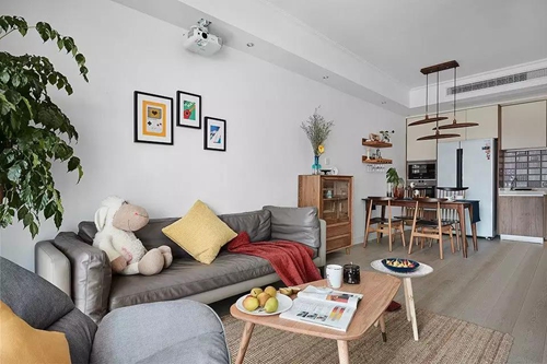 原木色系穿插在家中的各個(gè)角落,深灰色系布藝沙發(fā)搭配裝飾畫(huà)塑造和諧統(tǒng)一感。
