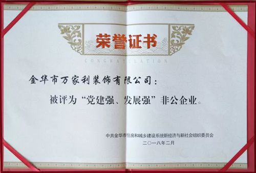 | 萬(wàn)家利裝飾榮膺“黨建強(qiáng)、發(fā)展強(qiáng)”非公企業(yè) |