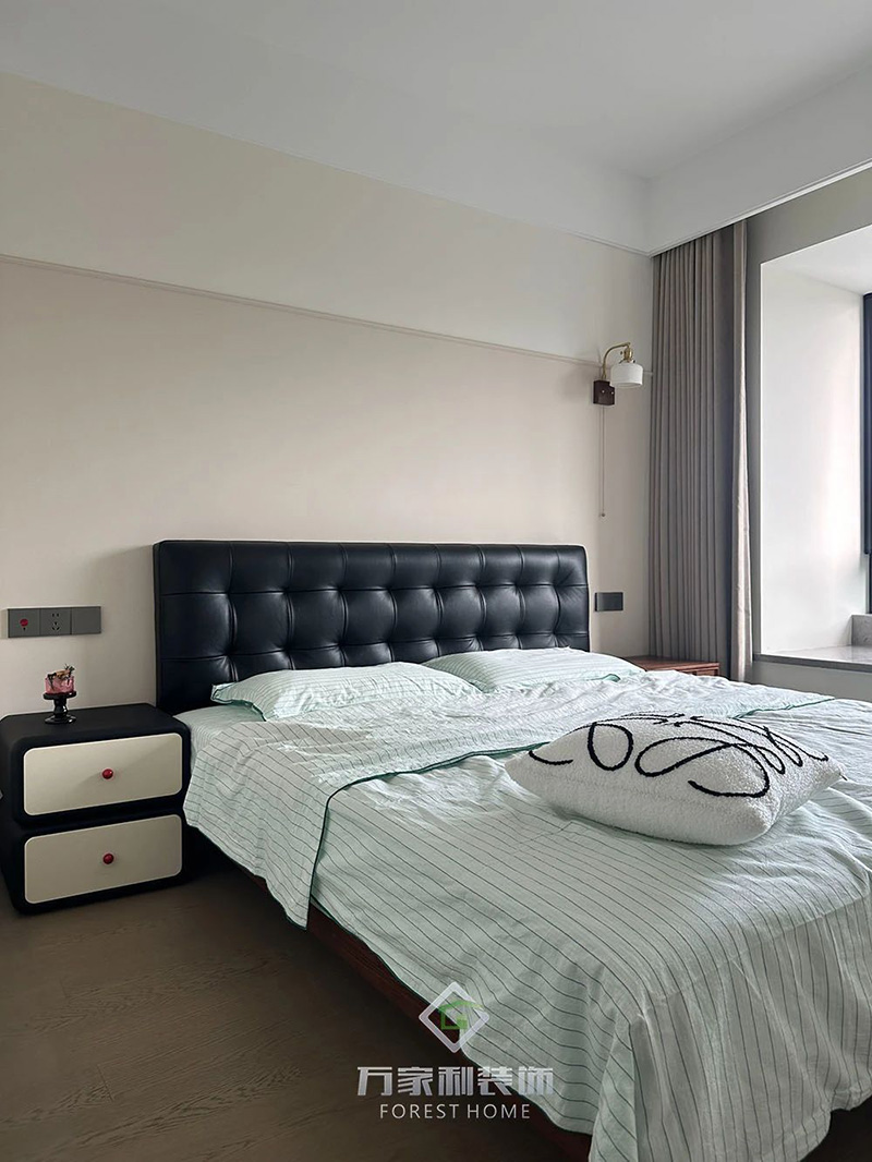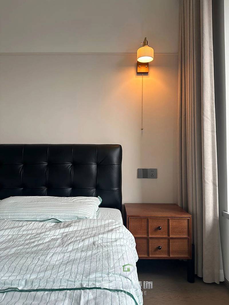 臥室床頭懸掛著法式中古風(fēng)的陶瓷壁燈,溫暖的燈光散發(fā)出淡淡的懷舊氛圍,手工陶瓷的質(zhì)感與溫潤的色調(diào),賦予了空間獨(dú)特的藝術(shù)氣息。