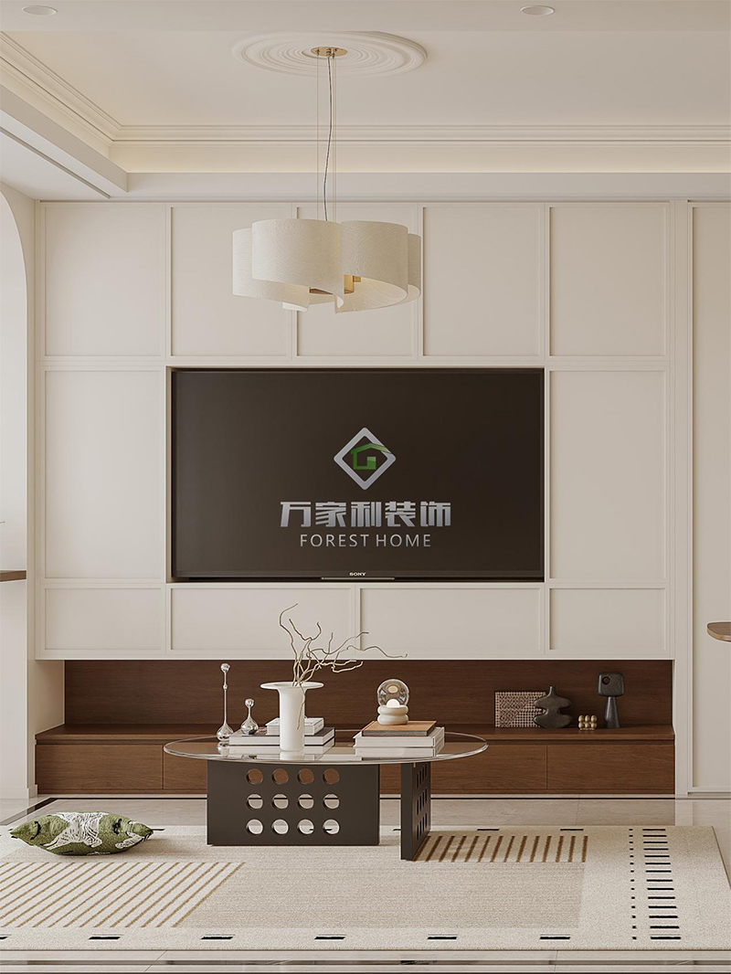 電視背景墻采用了骨骼線柜子,骨骼線設(shè)計(jì)增加了整體的立體感和層次感,簡(jiǎn)潔的線條高級(jí)感拉滿